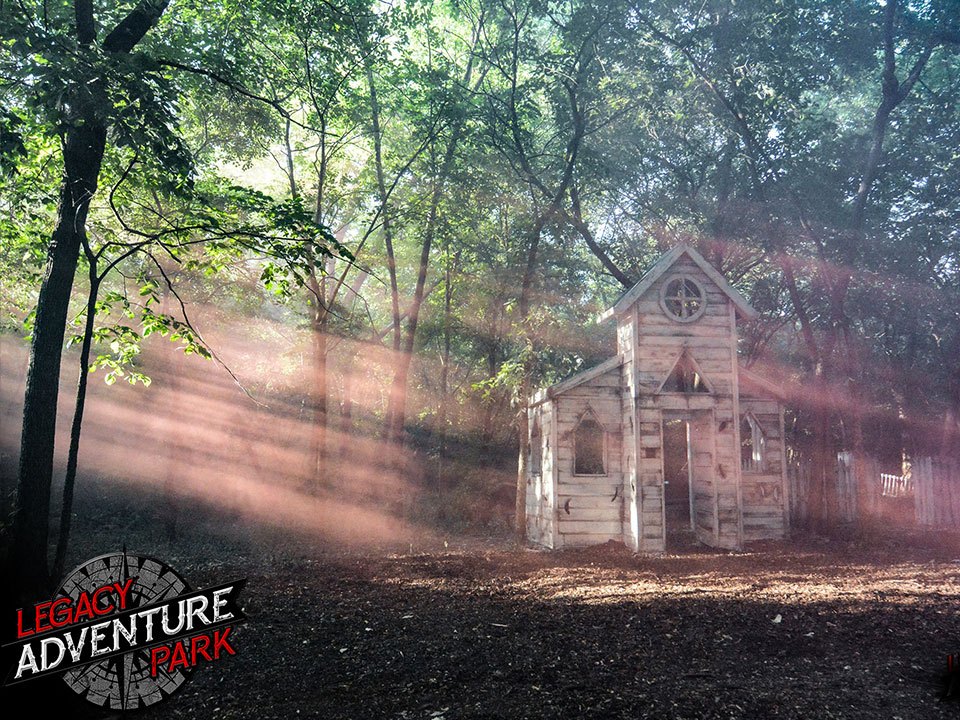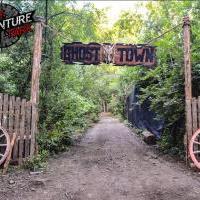 Ghost Town, at Legacy Adventure Park, is one of our largest fields. This unique oval design is 225 ft by 200 ft and features 9 buildings, 2 covered wagons, 6 wagons, and an additional 25 bunkers. Sitting under the cover of tall trees, with a mulch playing surface, Ghost Town is a perfect field to escape the summer sun. Whether you are playing Paintball, AirSoft, Laser Tag, or Archery Tag, you and your friends will be transported into another time and another world.